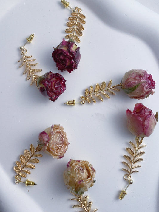 Gold Leaves Classic Rose Drop Dangle Earrings