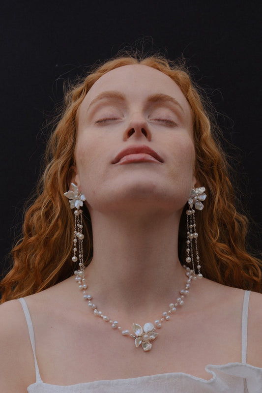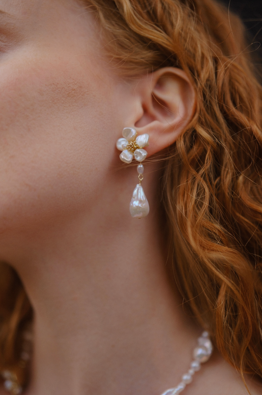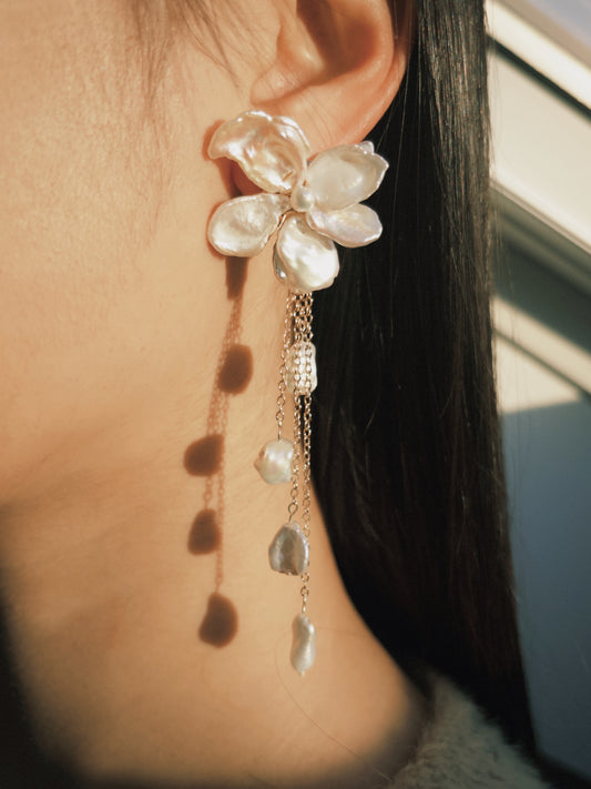 Keshi Pearls Flower Meteor Shower Drop Earrings №40
