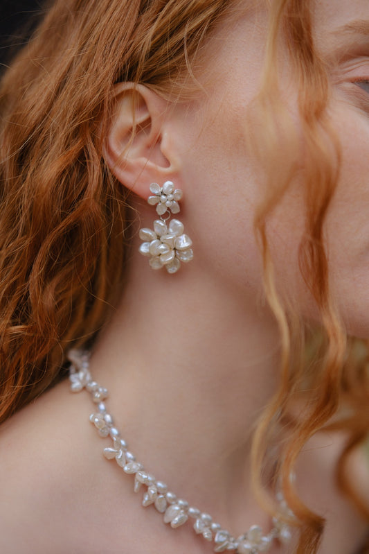 Keshi Flower Pearl Cluster Dangle Drop №56