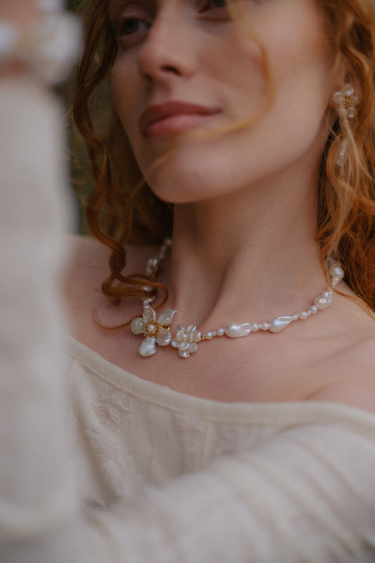 Mini Baroque White Keshi Pearl Flower Necklace №53