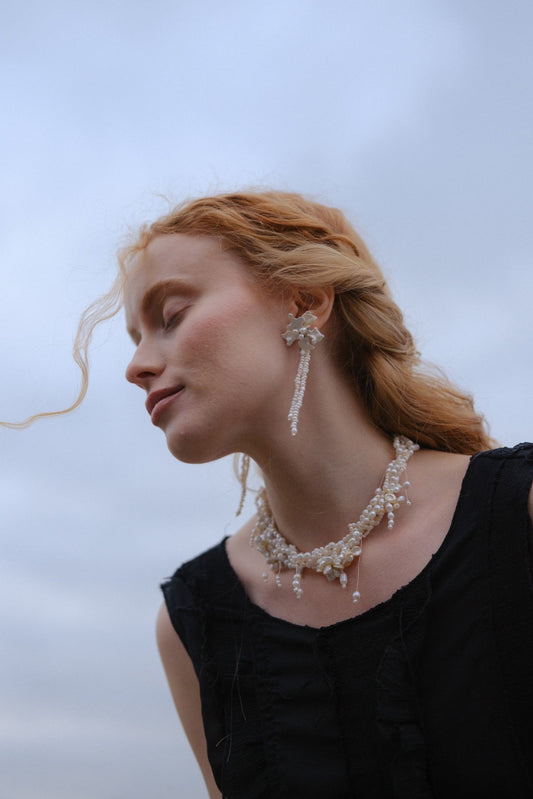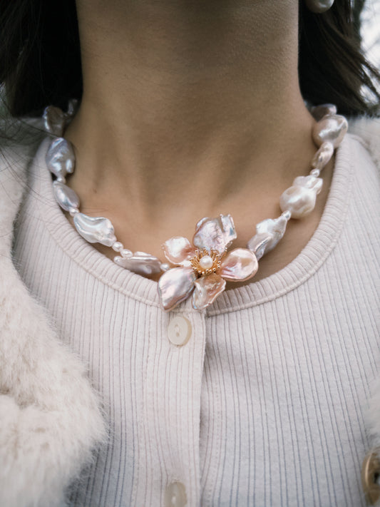 Meteor Keshi Pearl Flower Illusion Necklace №54