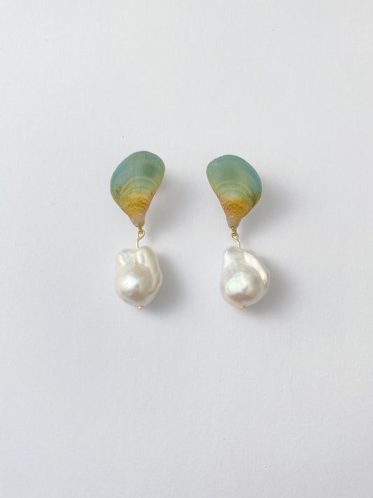 Rainbow Mussel Baroque Pearl Dangle Earrings