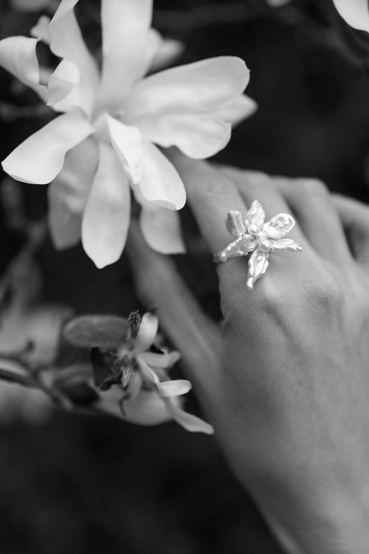Keshi Pearls Snowflake Flower Ring №06