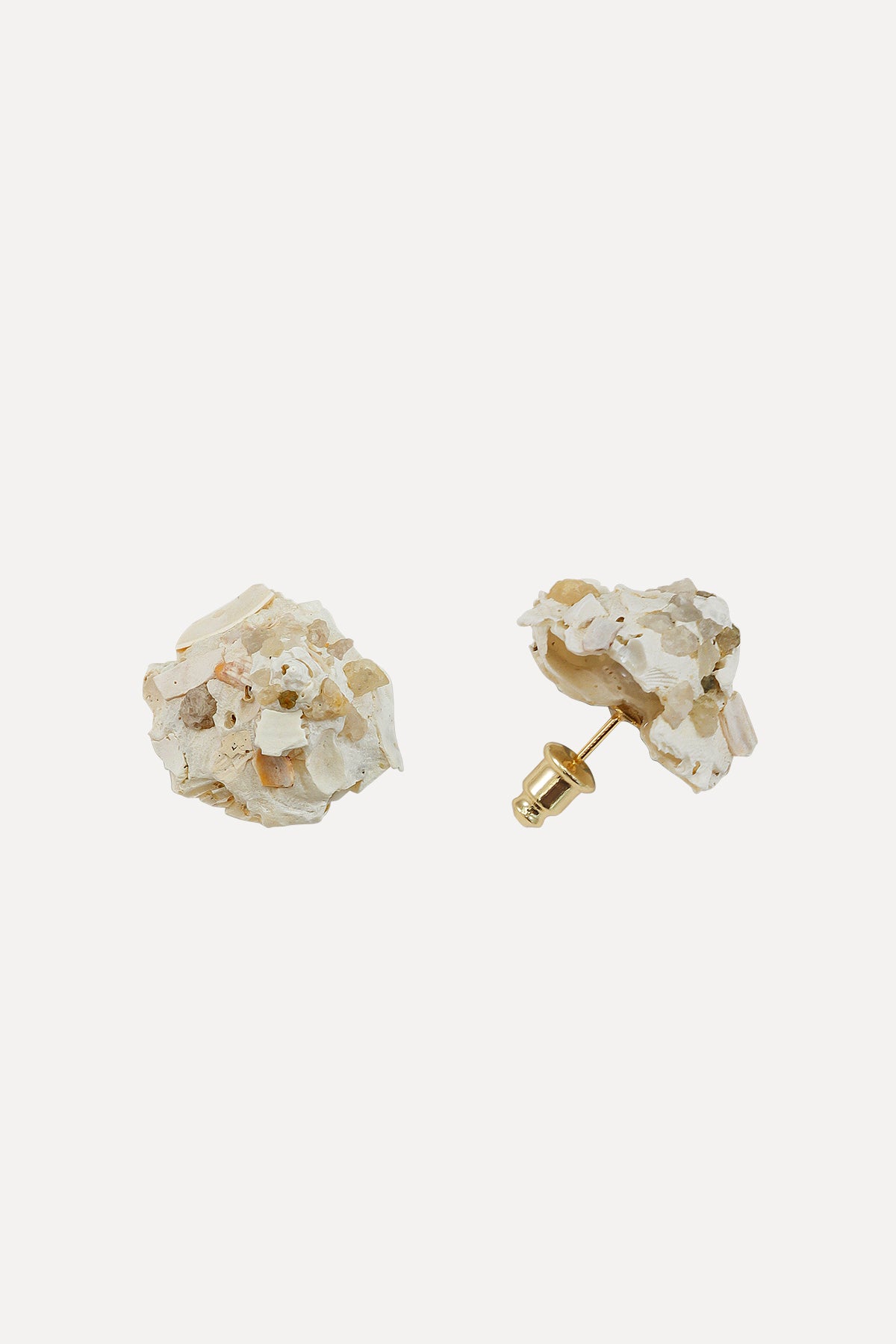 The Carrier Shell is a natural designer of the sea. It carefully selects and arranges tiny shells, stones, and fragments onto its spiral shell, creating unique patterns with order and harmony. Each pair of earrings reflects this natural craftsmanship, no two are exactly alike, making every piece truly special.