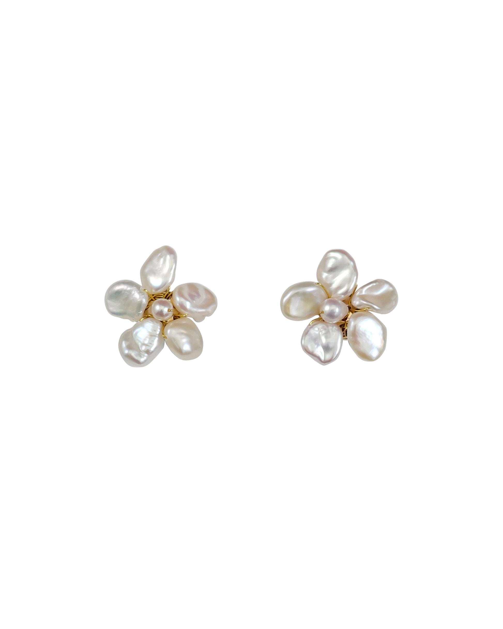 Mini White Keshi Pearl Flower Stud Earrings №45
