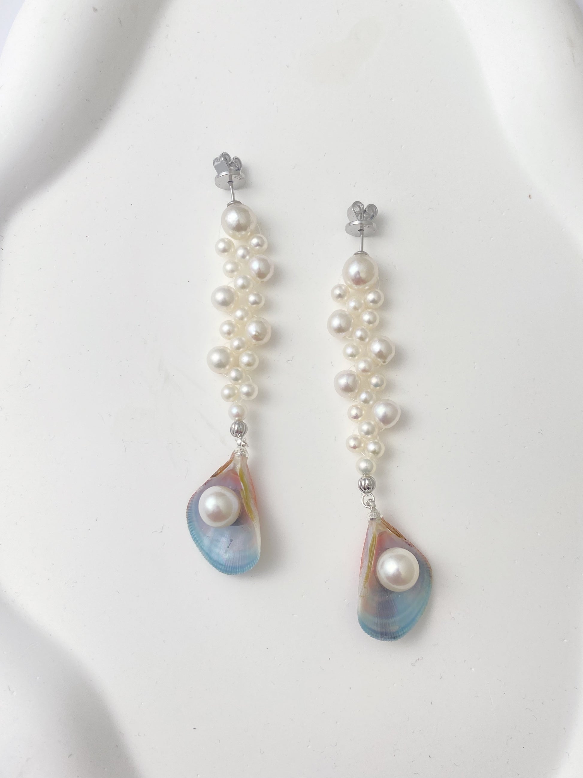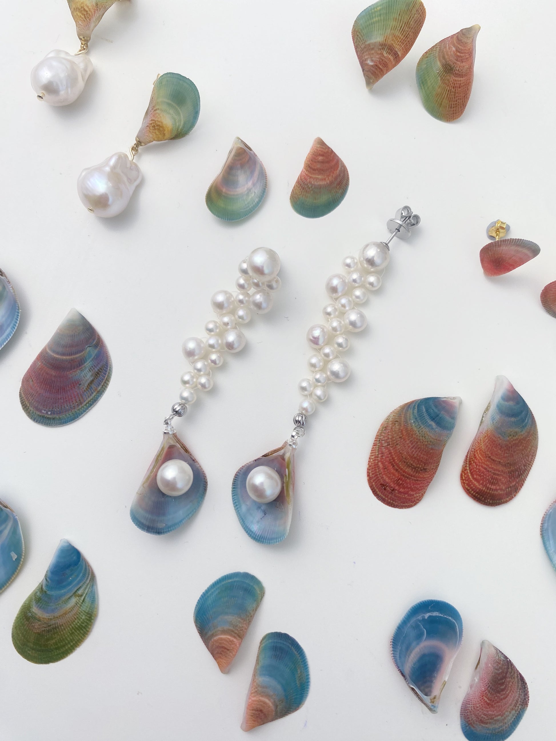 Sea Glow Rainbow Mussel Pearl Dangle Earrings